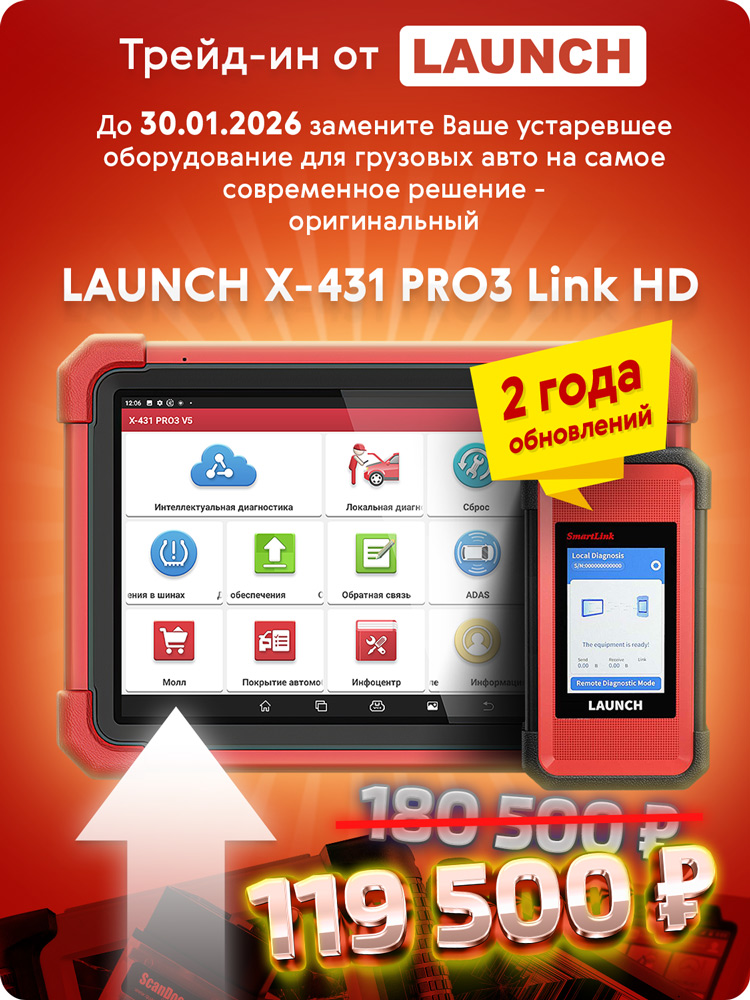 Трейд-ин от LAUNCH: получите Launch X-431 PRO3 Link HD для грузовых автомобилей со скидкой более 61 000 ₽! До 31 января 2026 г. обменяйте свой старый сканер для грузовых авто на Launch X-431 PRO3 Link HD для грузовых автомобилей за 119 500 ₽. В подарок — 2 года официальных обновлений на 100+ марок груз...